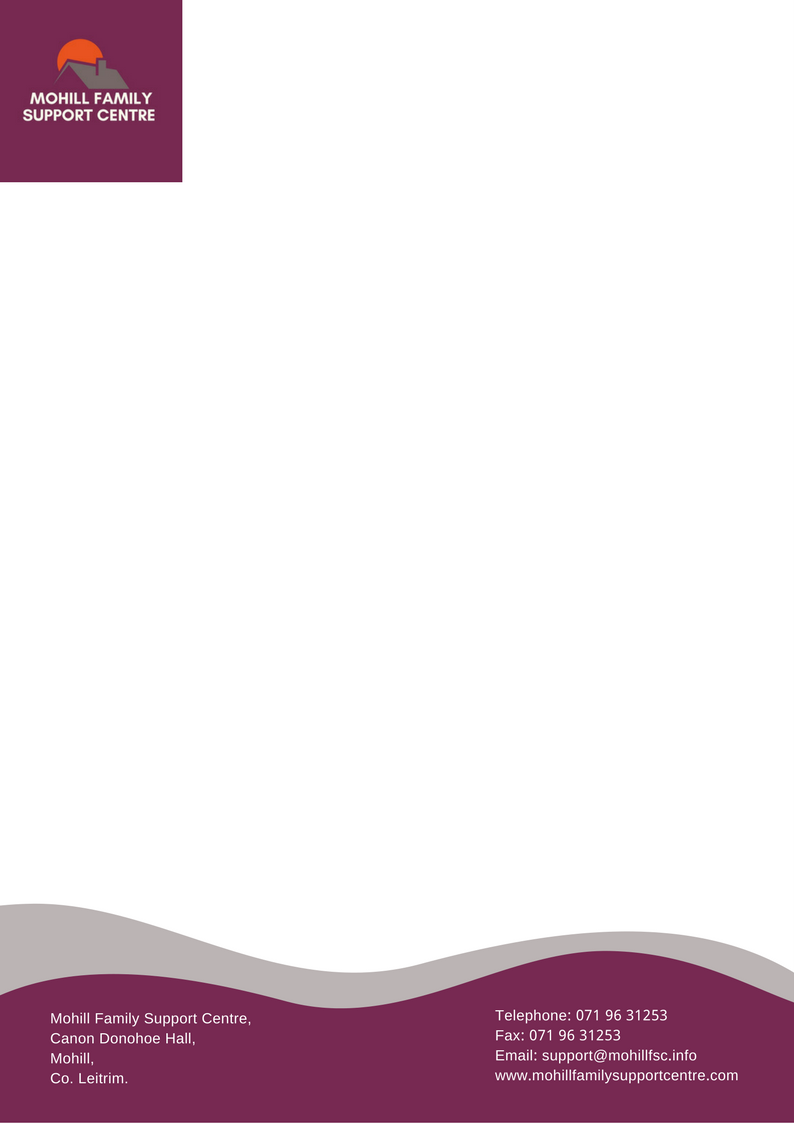 MFSC LETTERHEAD Published June 20, 2017 at 794 × 1123 in Case Study: Mohill Family Support Centre ← Previous Next → A4 Letterhead